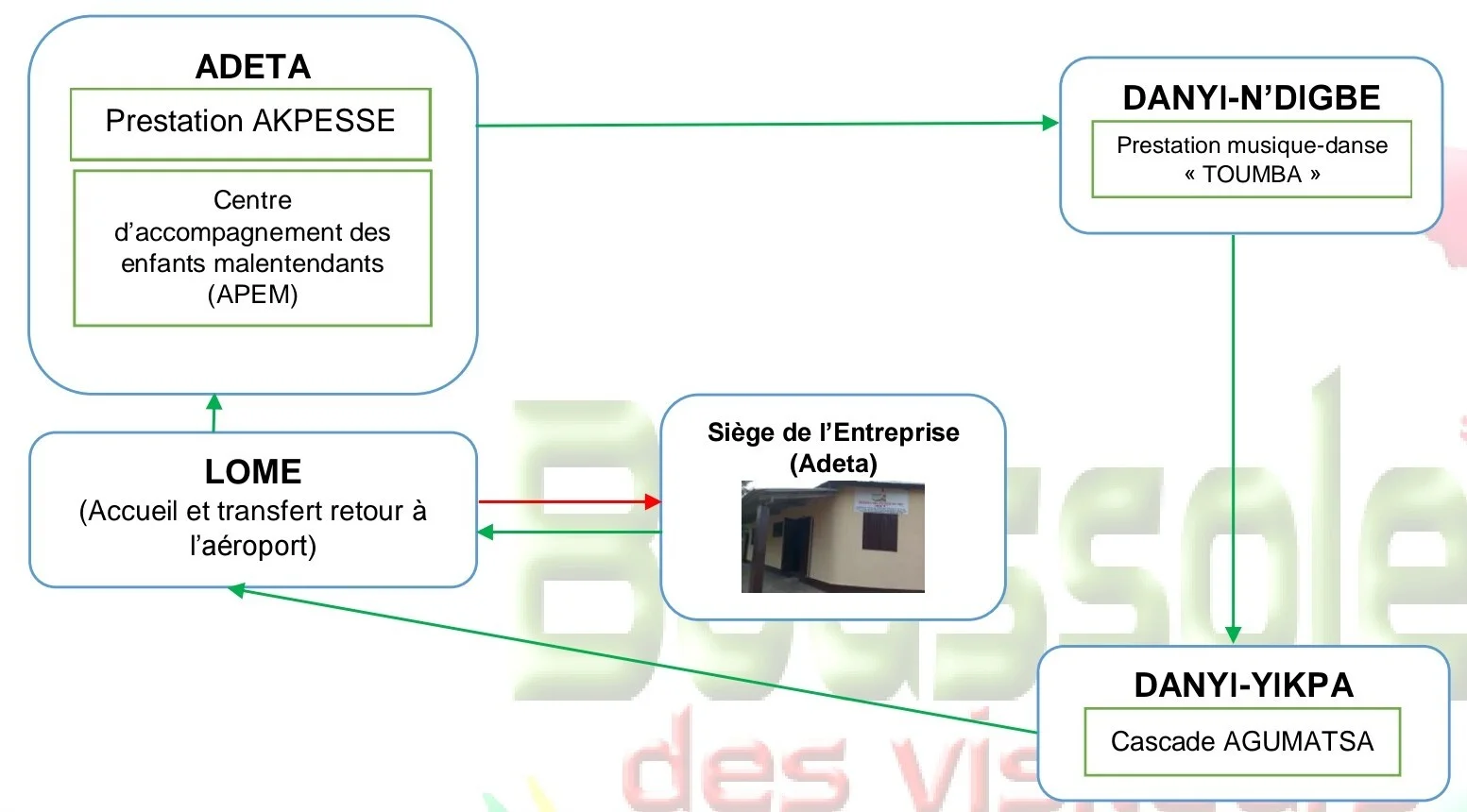 C’est également une occasion de découvrir les prestations locales de musiques telles que « AKPESSE » avec un accent particulier sur la prestation de musique et danse « TOUMBA » de Danyi qui est une prestation authentiquement conservée depuis 1988. Cette musique reflète l’image de l’ambiance festive dans les villages au temps ancien. Une autre particularité de la musique TOUMBA est qu’elle est accompagnée de chansons d’amour du vieux temps comme c’était depuis nos grands-parents. Par ailleurs, un tour au centre d’accompagnement des enfants handicapés de Kpele (APEM) permettrait d’encourager les promoteurs pour leur initiative louable au profit des enfants handicapés. S’en suivra des moments de réjouissances divers.